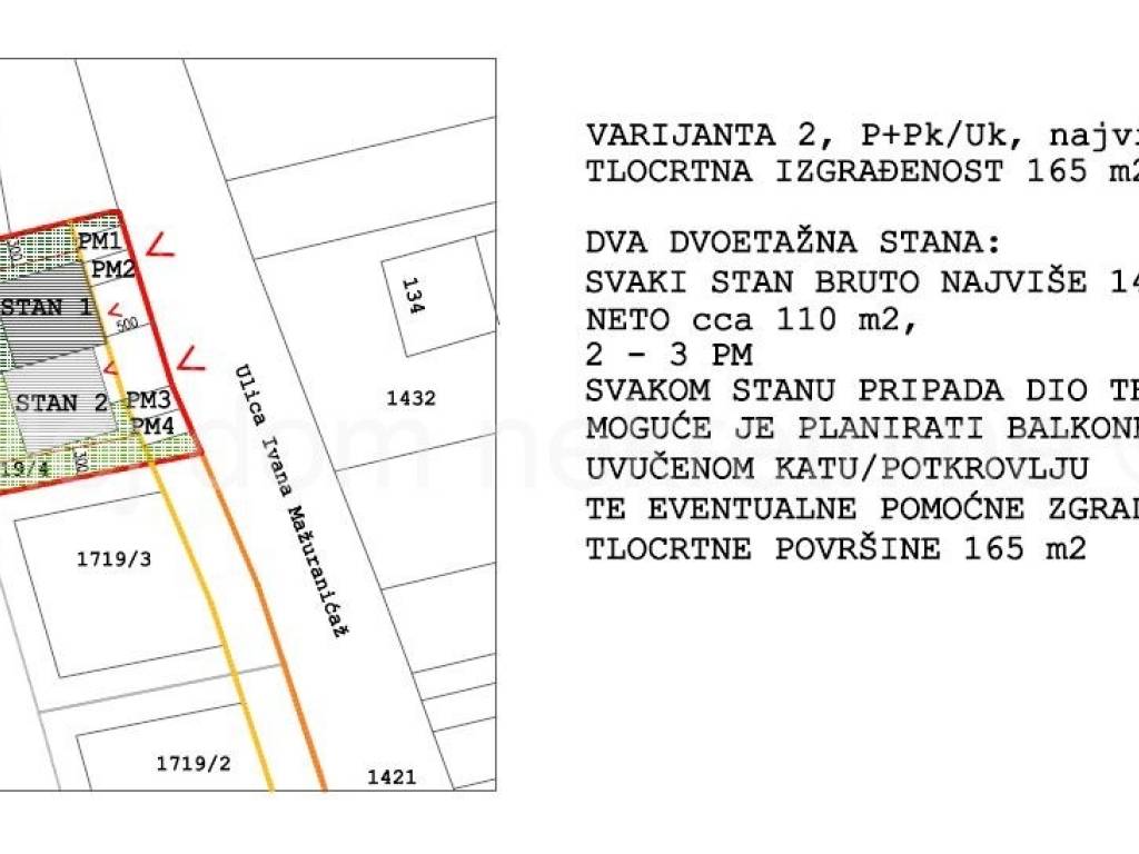 Prodaje se građevinsko zemljište od 551m2. Nalazi se uz glavnu prometnicu, po kojoj prolazi infrastruktura (struja, plin, gradski vodovod). Zemljište je ravno, a među fotografijama u oglasu su neke od mogućih varijanti gradnje.