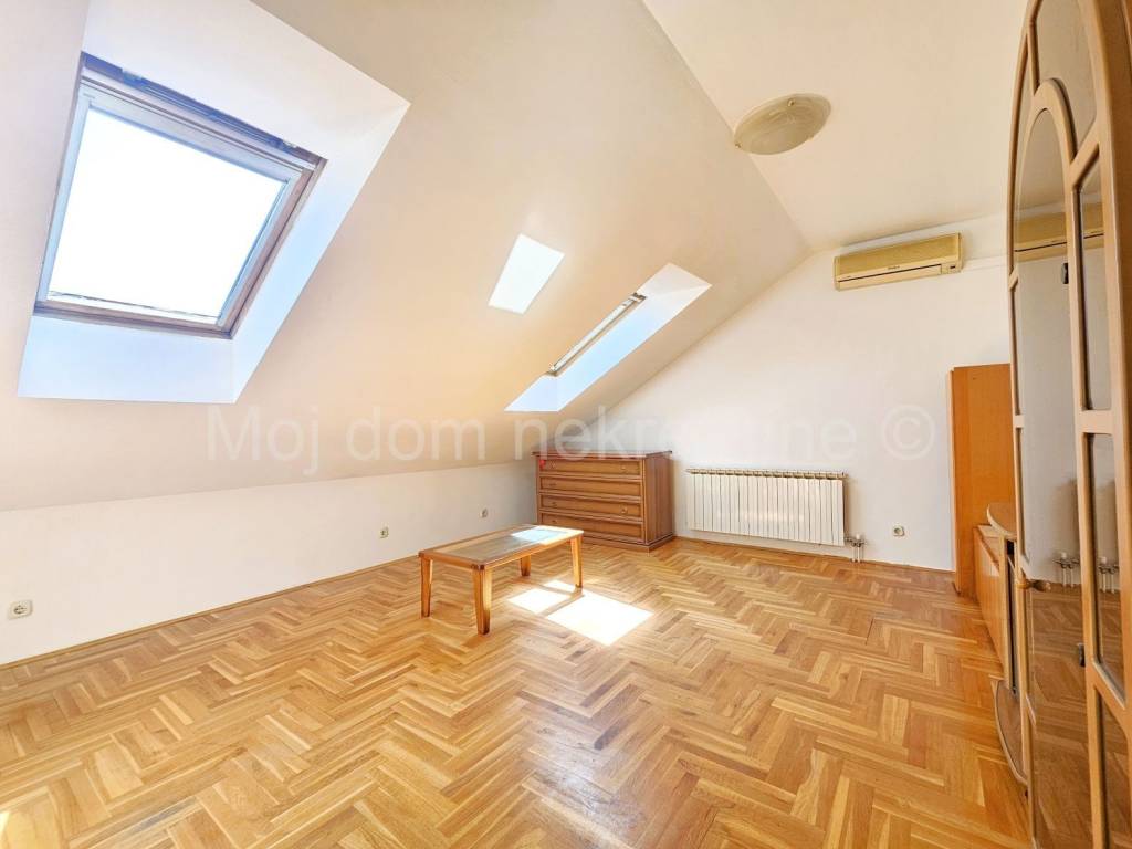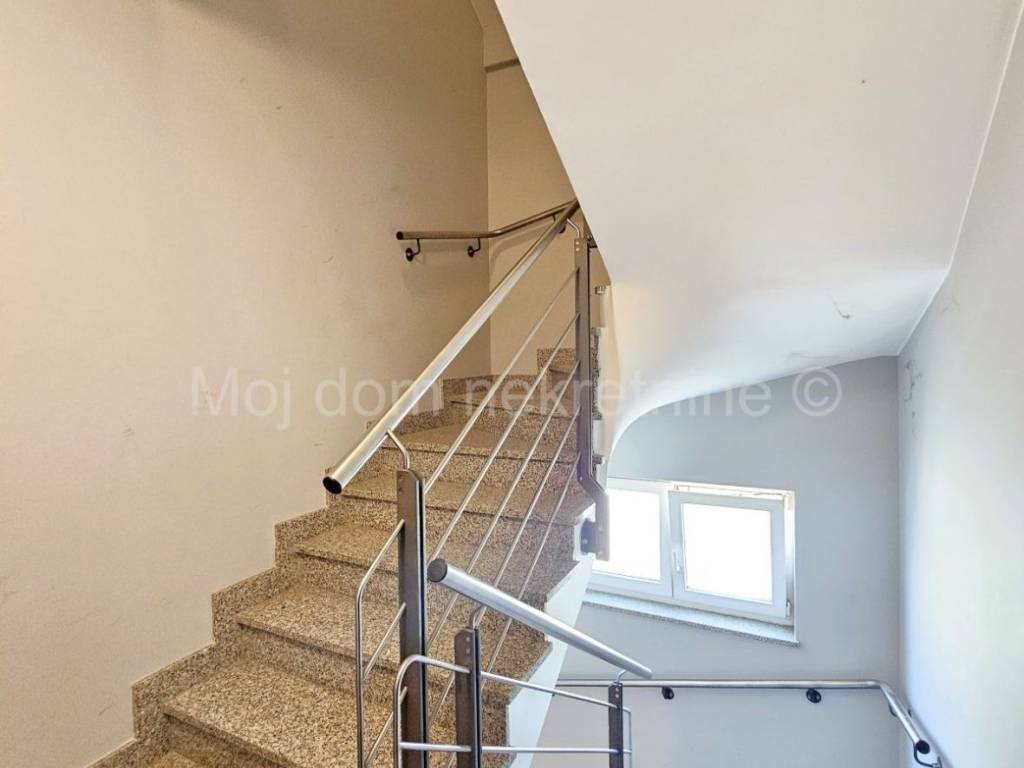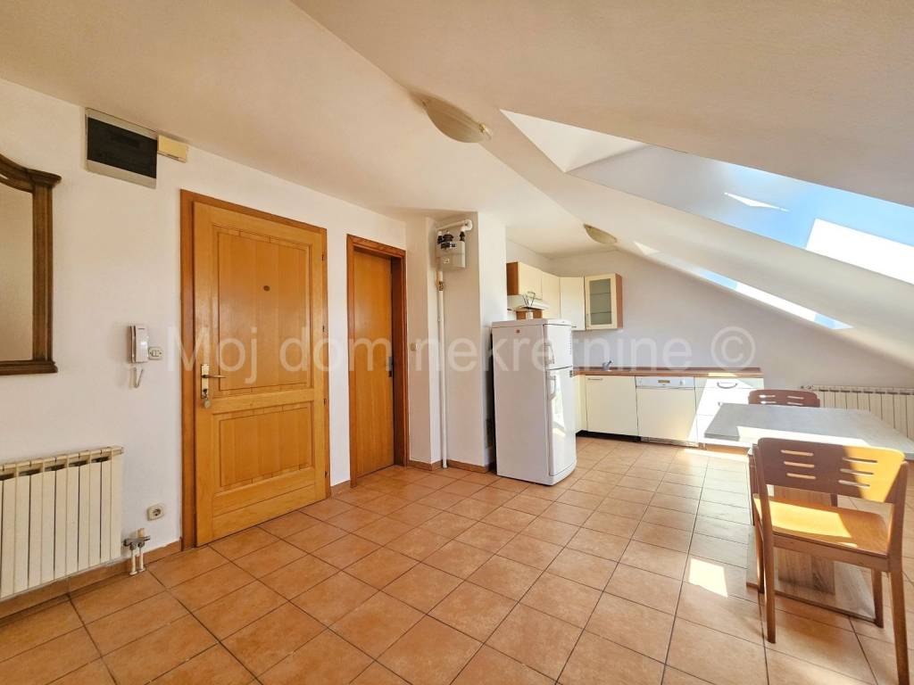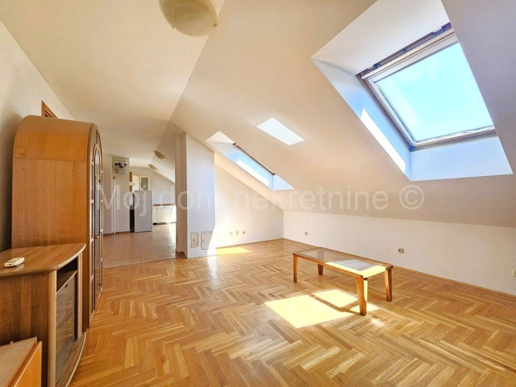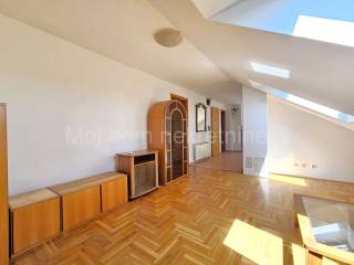 Prodaje se 2 soban stan na 3. katu zgrade od 3 kata. Izrazito svijetao zbog svoje trostrane orijentacije. Stan je opremljen PVC stolarijom s roletama i velux krovnim prozorima. Preinakom dnevne sobe moguće dobiti dodatnu spavaću sobu.Odvojena sva brojila (voda, struja, plin). Stan je podne površine 79.41m2 (po koef. zbog kosina NKP iznosi 53.26m2). Smješten je u blizini vrtića, škole, doma zdravlja, trgovine, tramvajske stanice te drugih bitnih sadržaja. Besplatan parking oko zgrade.