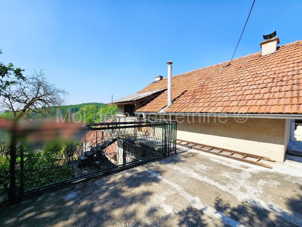 Prodaje se kuća sa pomoćnim objektom i okućnicom od cca 240m2. Kuća se proteže na 3 etaže (prizemlje, kat, i potkrovlje). Sastoji se od 2 odvojena stana (1 sobnog stana u prizemlju od cca 40m2 i 3 sobnog stana s balkonom od cca 82m2 na katu) te neuređenog potkrovlja koje ima zaseban ulaz. Garaža od cca 20m2 ima ulaz direktno sa ulice.