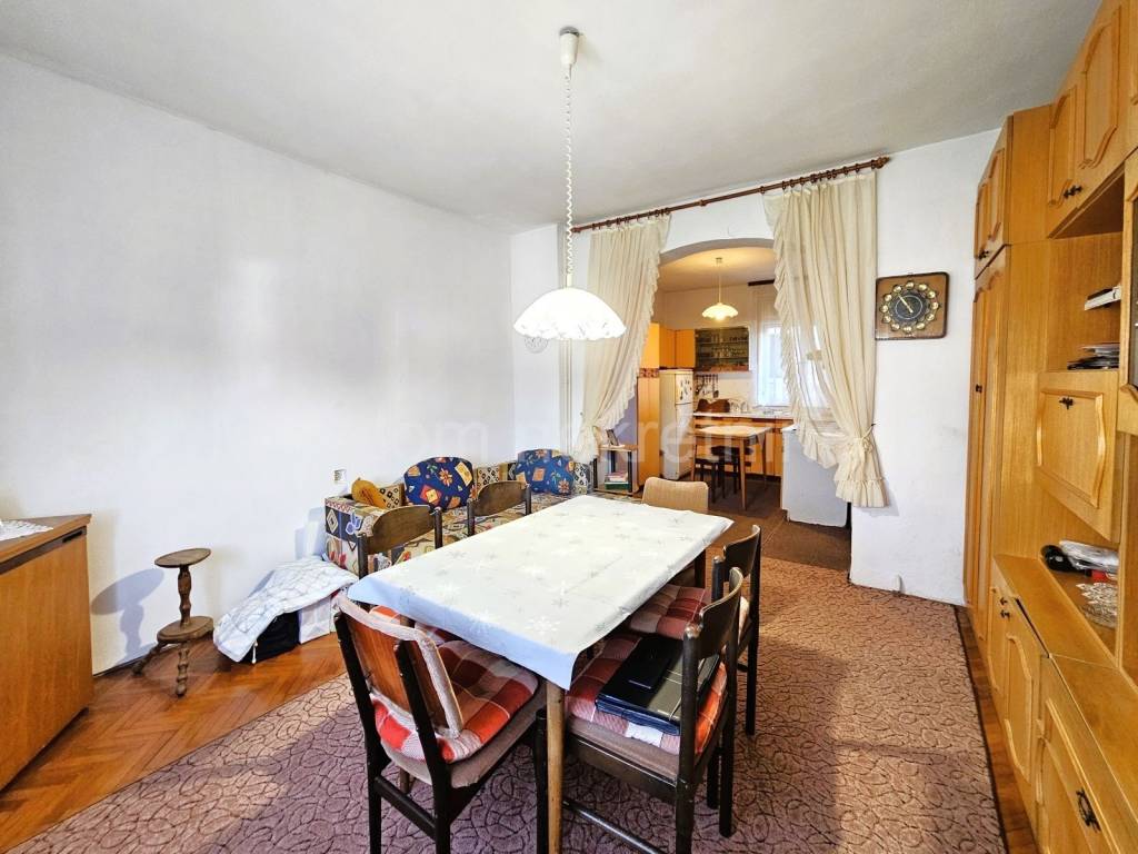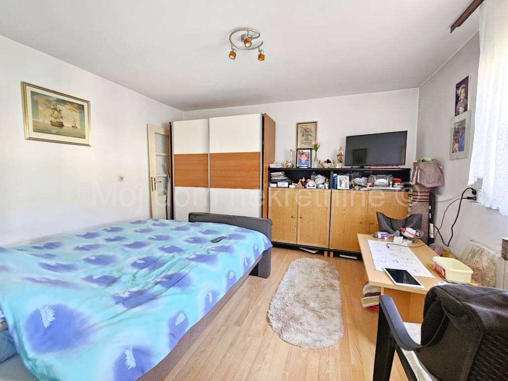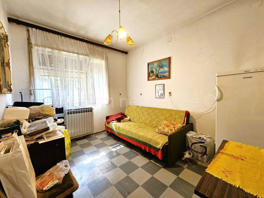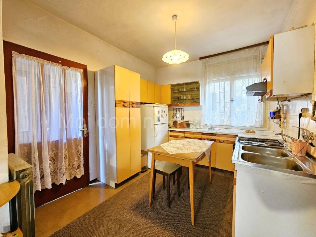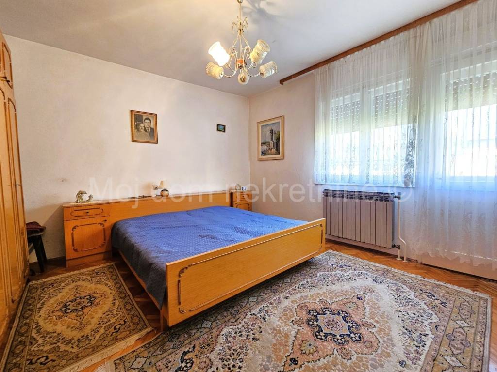 Prodaje se kuća sa pomoćnim objektom i okućnicom od cca 240m2. Kuća se proteže na 3 etaže (prizemlje, kat, i potkrovlje). Sastoji se od 2 odvojena stana (1 sobnog stana u prizemlju od cca 40m2 i 3 sobnog stana s balkonom od cca 82m2 na katu) te neuređenog potkrovlja koje ima zaseban ulaz. Garaža od cca 20m2 ima ulaz direktno sa ulice. Kuća ima sve potrebne priključke (gradski vodovod, kanalizacija, plin, struja). Izgrađena je 1967.g. te posjeduje Uporabnu dozvolu za građevine izgrađene do 15. veljače 1968.g.