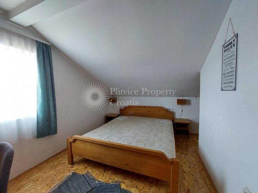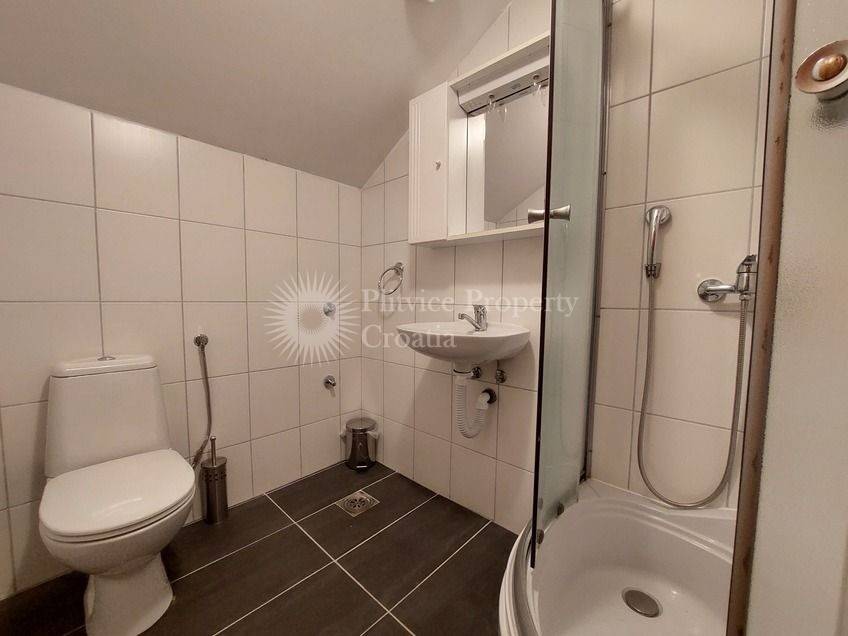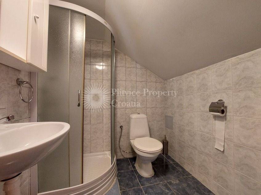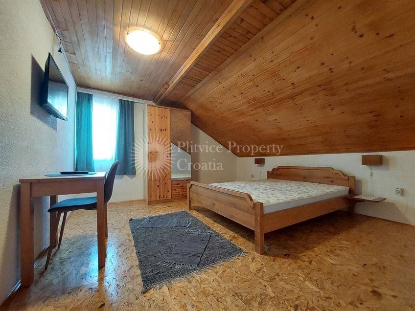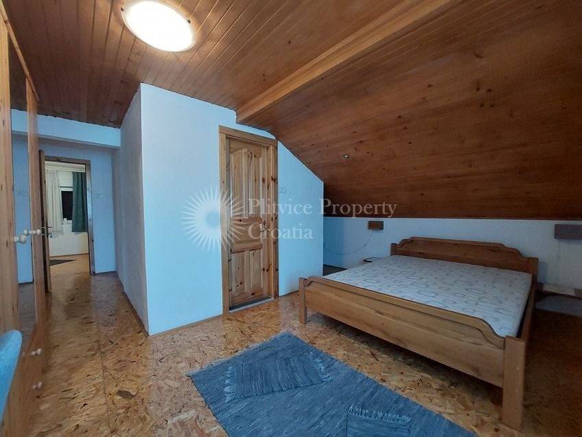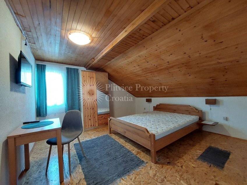 In Croatia is a guest house for sale. The guest house can host up to 24 people, consists of 2 buildings, and is located in a quiet neighborhood along a dead-end street on the edge of Korenica, at 18 km from Plitvi��ka Jezera. The centre of Korenica, with all its shops and facilities, is located 500 meters from the property. The property is fenced with a sliding gate and provides parking space for 9 cars. In the back of the property is the second building, which contains a garage and additional accommodation.
