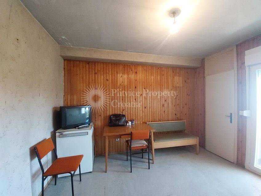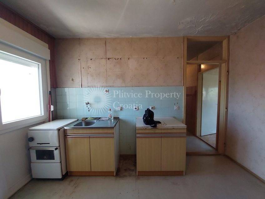 Discover this spacious apartment of 69.86 m, located on the fourth floor in the very center of Slunj. The apartment consists of three rooms, a kitchen, a bathroom, a separate toilet, a hallway, a balcony, and a loggia, offering a functional layout and plenty of natural light. The interior requires a complete renovation, making it an ideal opportunity for buyers who wish to design and customize their home according to their own taste and needs.