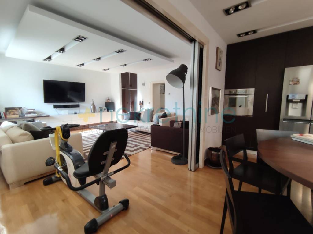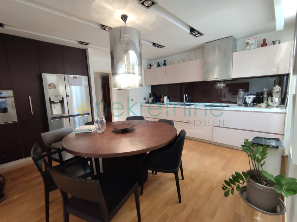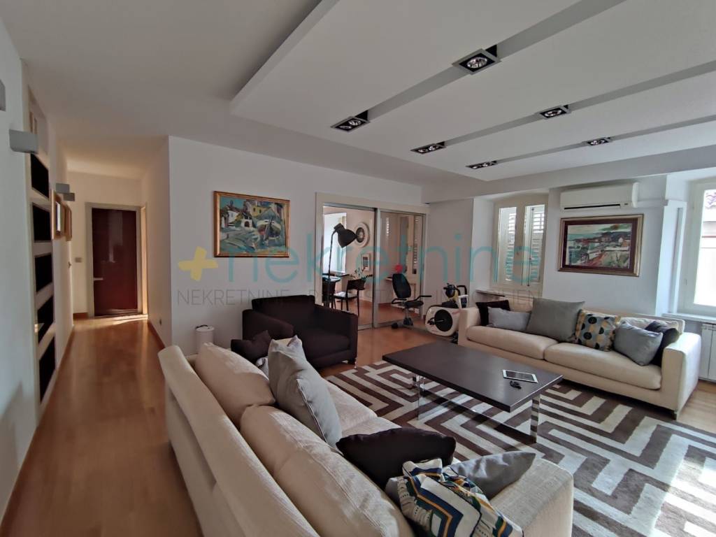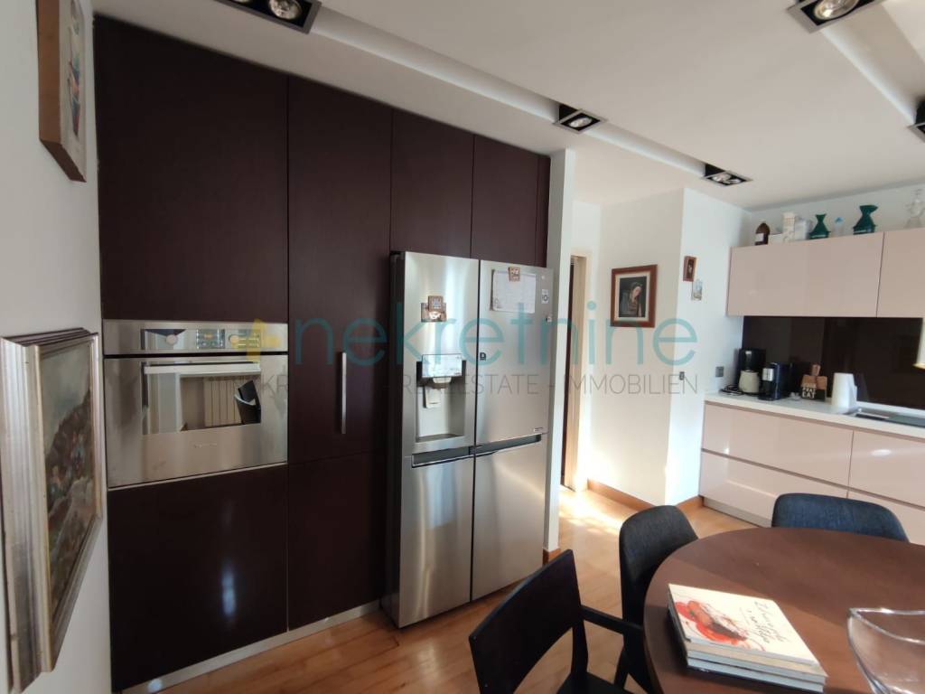 Prilikom renovacije zamijenjene su sve instalacije, a posebna pažnja posvećena je podnim i zidnim oblogama. U kupaonicama su postavljene vrhunske keramičke pločice koje stvaraju elegantan i luksuzan dojam, dok ostatak stana krasi visokokvalitetan parket, pružajući osjećaj topline i sofisticiranosti u svim prostorijama.