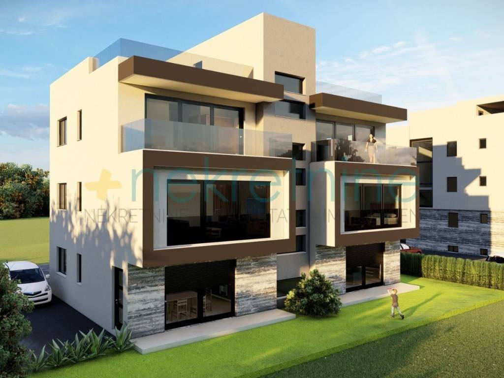 Na prodaju ekskluzivni četverokatni stan penthouse oznake S3, smješten u modernoj novogradnji u Sukošanu, svega 250 metara od mora. Stan se proteže od prizemlja do ravnog krova, povezan unutarnjim dizalom i stubištem, te nudi vrhunski komfor, prostrane terase i predivan pogled.
