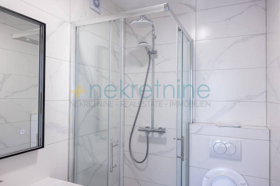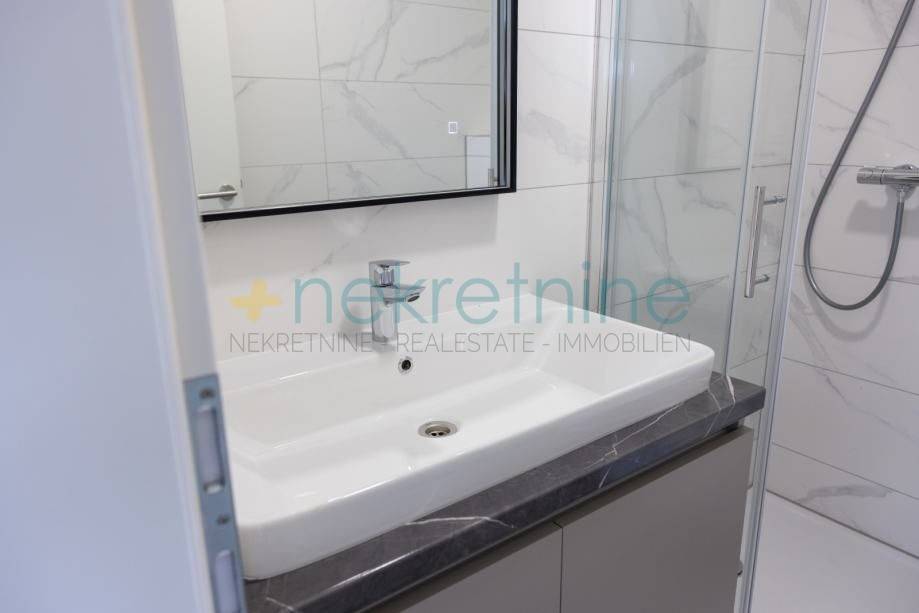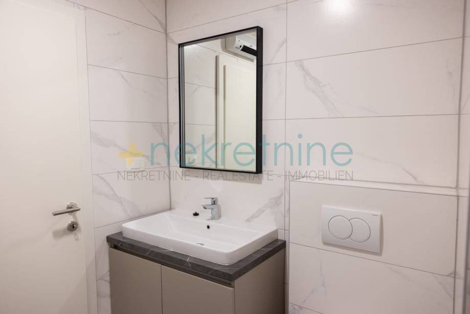 Stan se prodaje u fazi završnog uređenja, nenamješten, osim opremljenih kupaonica. Rasvjetna tijela nisu uključena osim onih u kupaonicama.