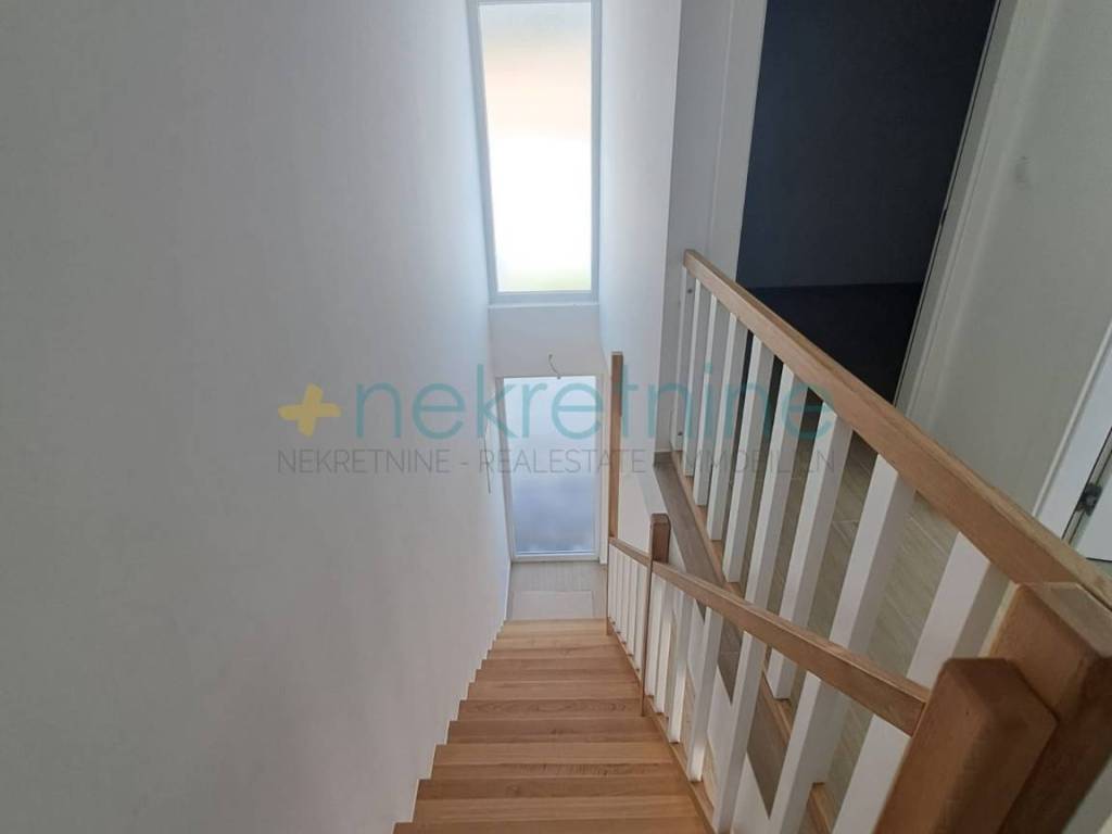 Apartman se sastoji od dvije etaže. U prizemlju se nalazi prostrani dnevni boravak povezan s kuhinjom i blagovaonicom u otvorenom konceptu, te gostinjski toalet. Na katu se nalaze dvije udobne i prozračne spavaće sobe te moderna kupaonica. Iz apartmana se pruža prekrasan pogled na more, što ovu nekretninu čini posebno privlačnom za boravak i opuštanje.
