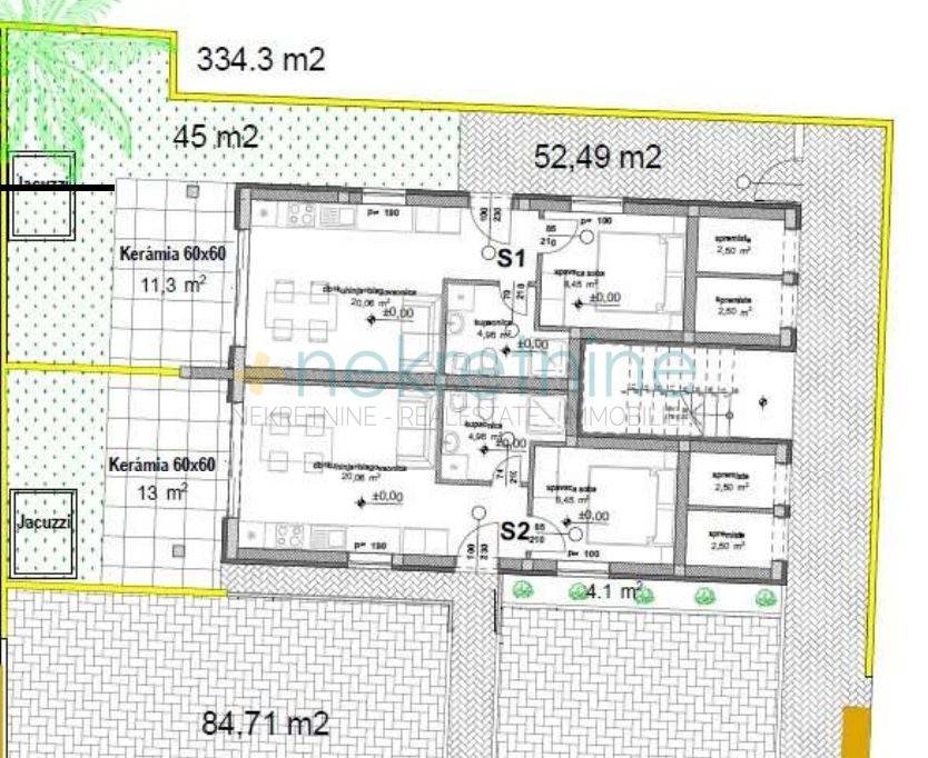 Četverosobni stanovi na 2. katu imaju ekskluzivne krovne terase s kupaonicom, WC-om i predviđenim jacuzzijem