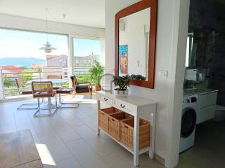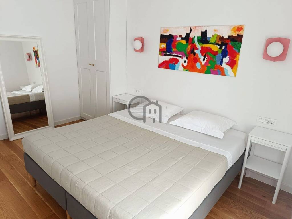 A large glass wall in the living room extends along the entire western side, providing plenty of natural light and a breathtaking panoramic view of the sea and sunset. The living area faces west, the bedrooms face east, and the bathroom is oriented north.The apartment is being sold fully furnished with high-quality, modern furniture and appliances from renowned manufacturers.All windows are fitted with electric shutters and insect screens. Both bedrooms feature Samsung Frame TVs (55”), and have beds 180 cm and 160 cm wide.The kitchen is equipped with a Bosch induction hob, dishwasher, and washing machine, a Gorenje refrigerator, and an Electrolux oven with microwave function (combo).Heating and cooling are provided by an air conditioning unit in the living room, while the bathroom has underfloor heating.