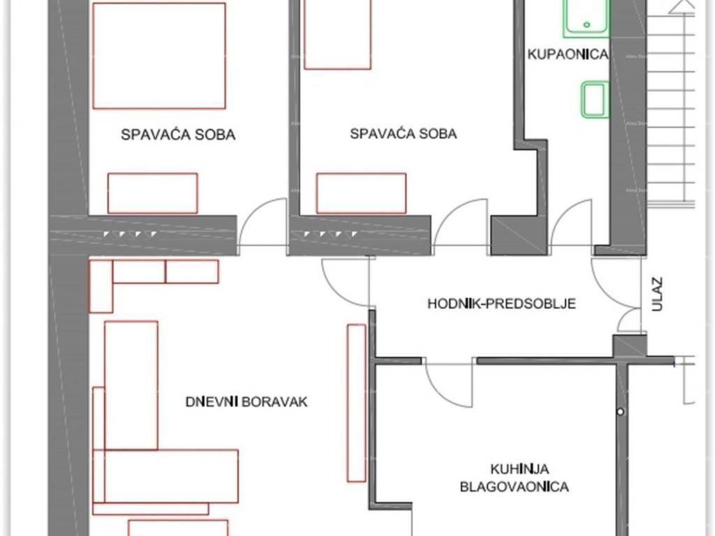 For sale: an apartment in the center of Pula. The apartment is located on the 3rd floor – a high attic of a well-maintained Austro-Hungarian building with nine apartments, without an elevator. All four facades of the building have been renovated, the roof has been restored, and the staircase has been updated. The apartment covers an area of 78.37 m² and consists of a living room, a kitchen with a dining area, two bedrooms, a bathroom, and a hallway. New PVC windows have been installed, along with three Velux roof windows, and three air conditioning units have been placed in the living room and bedrooms. The floors of the rooms are covered with classic oak and beech parquet, while the hallway, kitchen, and bathroom are tiled with ceramic tiles. The apartment has a meter and additional electrical installation with a preferential tariff (regulated electricity) for economical heating. The apartment is bright and sunny, with a wide panoramic view of the southern part of the city from the living room and kitchen-dining area.The apartment is located in an extremely sought-after location in the center of Pula, making it ideal for living, with all amenities accessible on foot. Nearby are a high school, market, cafes, shops, banks, post office, cultural and historical landmarks, and other facilities.For more information, please contact:Azra Valjevac +385 91 611 5706 +385 98 420 885 azra@almadominvest.com
