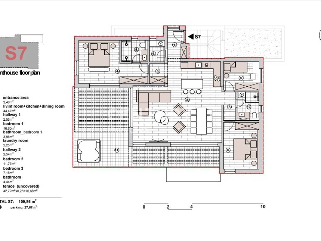 Od dodatnih sadržaja, stan nudi dva balkona odkojih je jedan natkriven, a jedan nenatkriven sa jakuzzy-jem, što ga čini idealnim izborom za obitelji i sve koji cijene vanjski prostor. Opremljen je podnim grijanjem, klimom te satelitskom TV. U sklopu objekta nalazi se i parkiralište sa punionicom na struju za auto.