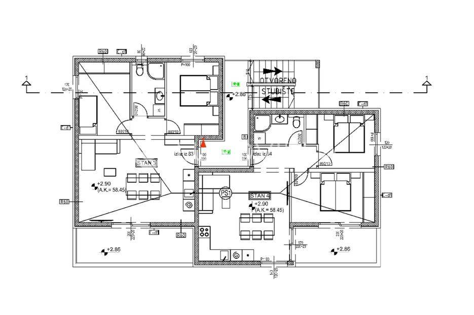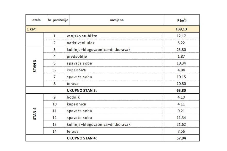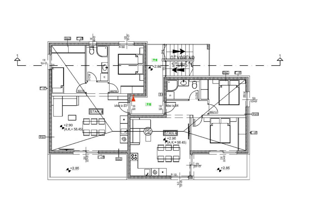 U neposrednoj blizini povijesnog grada Trogira, gradi se stambeni objekt sa 7 stanova južne orijentacije na pješačkoj udaljenosti od mora od cca 900 m. Zahvaljujući izoliranoj poziciji, lokacija objekta pruža izuzetan mir.Dvosoban stan S3 na prvom katu neto korisne površine 58,40 m2 sastoji se od ulaznog prostora, kuhinje, blagovaonice, dnevnog boravka, kupaonice, predsoblja, dvije spavaće sobe, i natkrivene terase površine od 10,80 m2 .Svi stanovi će biti opremljeni klima uređajima i podnim grijanjem u kupaonicama. Podne obloge će biti od keramičkih pločica. Na prozorima i vratima će biti postavljena PVC stolarija, troslojna stakla a vanjska termo izolacija će biti od 8 cm stiropora.U tijeku izgradnje postoji mogućnost individualnih dogovora oko uređenja interijera.Svaki apartman ima na raspolaganju 1 parking mjesto uključeno u cijenu.Ukupna neto korisna površina stana sa svim pripadcima iznosi 61,52 m2.Očekivani početak radova je kraj 2025 godine a useljenje krajem 2027 godine.Investitor je fizička osoba a način plaćanja je: rezervacija min 5.000 eura / 30 % prilikom potpisa predugovora / 30 % nakon završetka konstrukcijskih radova / 20 % nakon završetka fasade / 15 % nakon završetka unutrašnjosti / 5 % nakon ishođenja uporabne dozvole.Dodatne informacije - udaljenosti od važnijih lokacija:Plaža: 900 m / Trogir: 1400 m / zračna luka: 4 km / Split: 30 kmKupovina: 500 m / restoran: 800 m / ljekarna: 500 m / banka: 500 mZa sva dodatna pitanja stojim na raspolaganju.