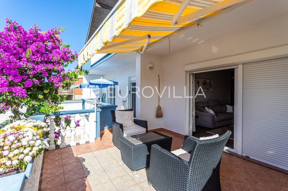 Zadar, Žmirići, kuća na tri etaže u mirnom naselju.U prizemlju se nalaze dva uređena stana sa jednom spavaćom sobom, a na prvom katu jedan prostrani stan sa tri spavaće sobe i pogledom na more. Potkrovlje nije uređeno, a sa najviše etaže pruža se prekrasan pogled.Kuća je izgrađena 1995. godine i jako je dobro održavana, a posljednja adaptacija bila je prije dvije godine.Dvorište je prostrano i lijepo uređeno. Do kuće se može doći sa dvije strane, odnosno ima pristup sa dvije ulice.Ova kuća je odlična za obitelj, ali i dobra kao investicija za sve one koji se žele baviti turizmom.Vlasništvo uredno.Više informacija na upit.