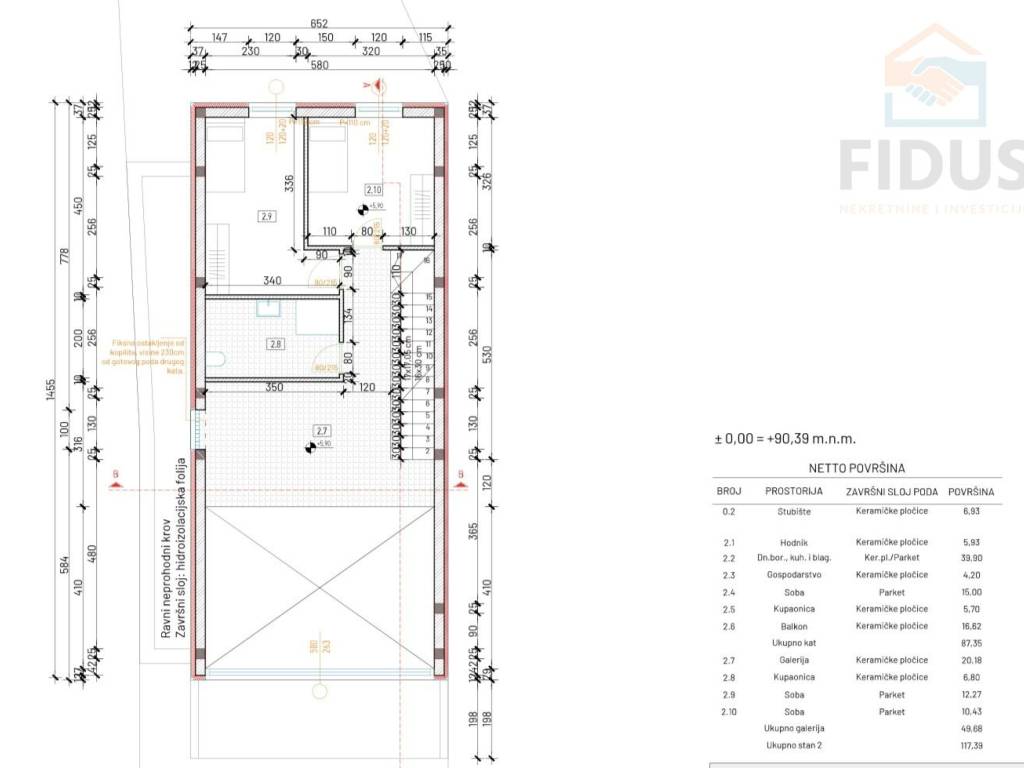 Ukupna površina stana (kat + galerija): 117,39 m2