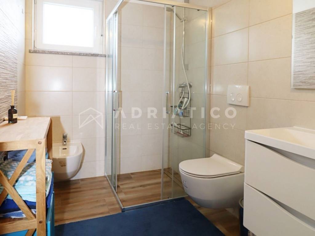 The house consists of two floors, in total three bedrooms, three bathrooms and an additional smaller room which can be used as a study or walkin closet.