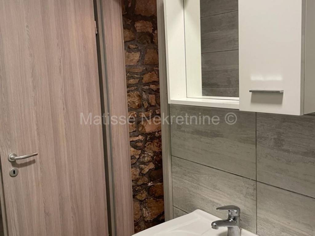 Experience the charm of the old town of Rovinj in this lovely 25m studio apartment. The apartment consists of a kitchen separated by a brick bar from the rest of the space, which serves as a living and sleeping area, as well as a bathroom.