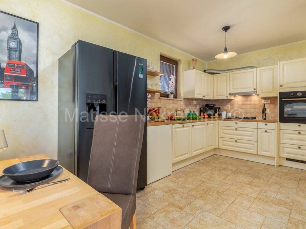 Ližnjan - House with Pool in a Quiet Location A house of 140m2 is for sale, divided into ground floor and first floor. The property is located on a 540m2 plot in a quiet street. The entire plot is fenced, providing complete privacy. The ground floor of the house has an entrance area, an open space living room with kitchen and dining room, and a bathroom. The first floor has 3 beautiful bedrooms, one of which has its own balcony, and a spacious bathroom with a bathtub. In the backyard of the house there is a 30m2 swimming pool, a sunbathing area, a place to sit and enjoy, and 4-5 parking spaces. The distance to the sea and the beach is 5km. The distance to the town center is 250m. Contact us for more information and to schedule a viewing! pula.matisse@gmail.com +385 98 197 68 20 www.matisse-immobilie.com