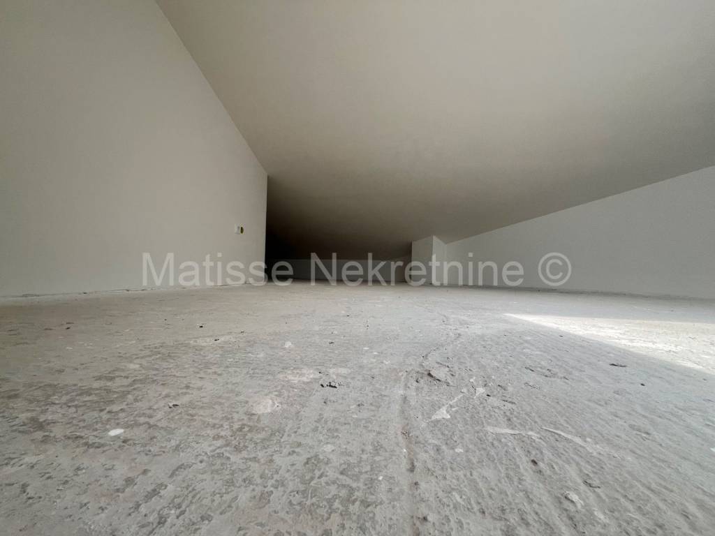 It consists of 2 bedrooms, a living room with a kitchen, a bathroom, a spacious terrace, and an attic above the entire surface of the apartment. The attic is finished, and all installations have been carried out. Only the flooring of your choice remains to be installed.