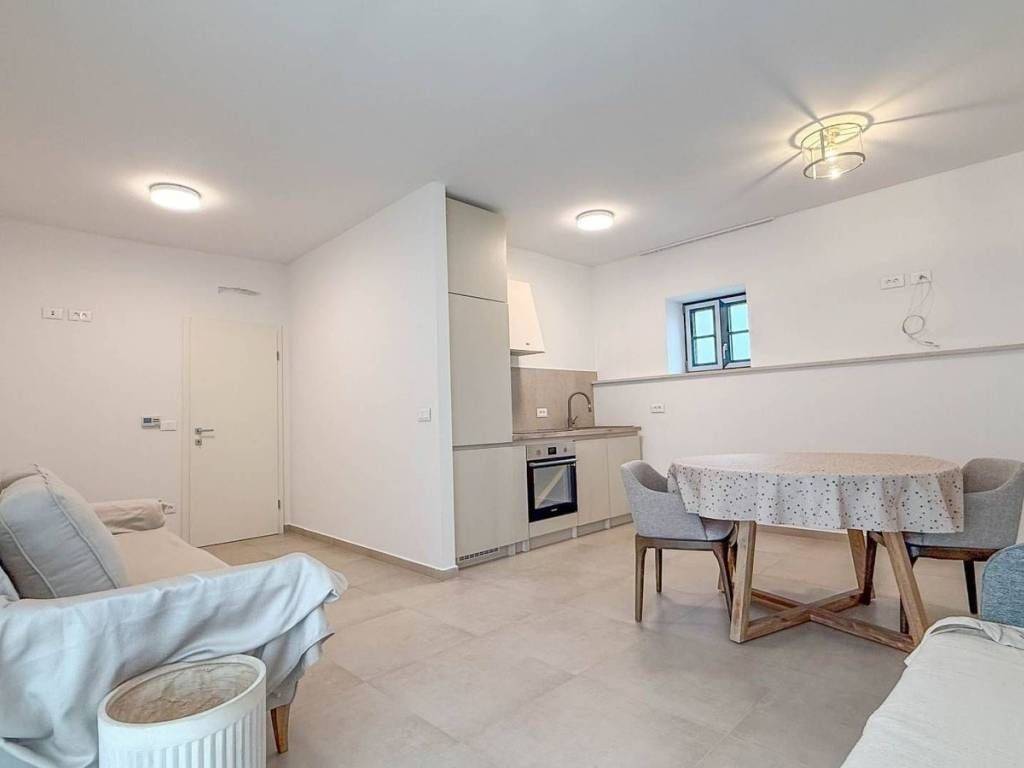 Poreč - Tar, in a quiet street we are selling a two-bedroom apartment on the ground floor with an area of 52 sqm.It consists of a semi-covered terrace of about 20 sqm, an entrance hall, a bathroom equipped with a washing machine, boiler, complete sanitary facilities, and 2 bedrooms and a living room with a kitchen. The apartment has one parking space.The kitchen is custom-made from oak wood and equipped with all the necessary appliances, from a refrigerator, oven, hood, dishwasher and sink. Electric underfloor heating has been implemented throughout the apartment. The 1st phase of air conditioning has also been implemented in each room. The exterior PVC joinery is premium quality, Belgian brand Deceunnick, three-layer. There is a TV connection in the living room and in both bedrooms.The apartment is airy and comfortable. It is tiled with beautiful Italian ceramics of the highest quality.It is being sold furnished and is ready to move in immediately.