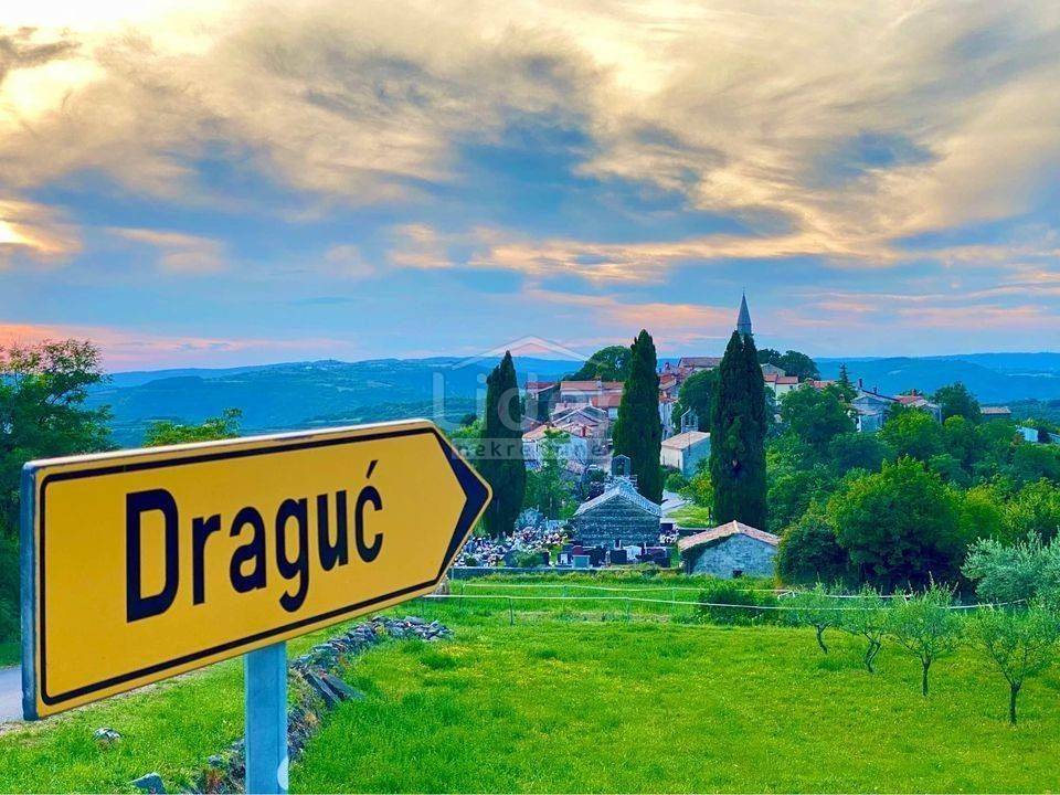 A building plot of 2257 m2 in a unique position in Istria is for sale. The special feature of this terrain is that it is located on top of a hill from which there is an unobstructed view of all four corners of the world. Looking south, you can directly see the town of Draguć, to the southwest you can see Lake Butoniga and the hills of central Istria, while to the north you can see Čićarija, and to the east Učka.