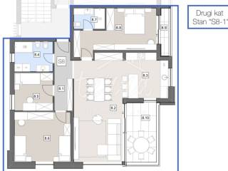 A three-bedroom apartment is for sale on the second floor of a new, modern urban villa.