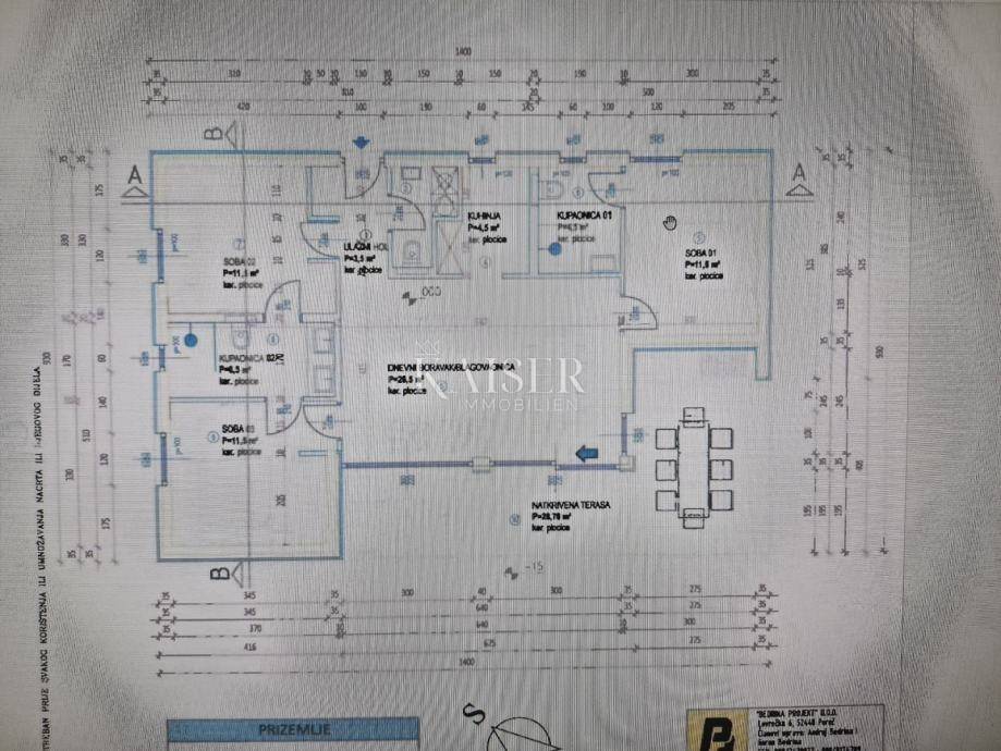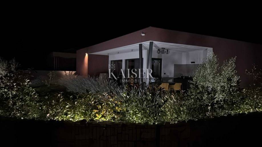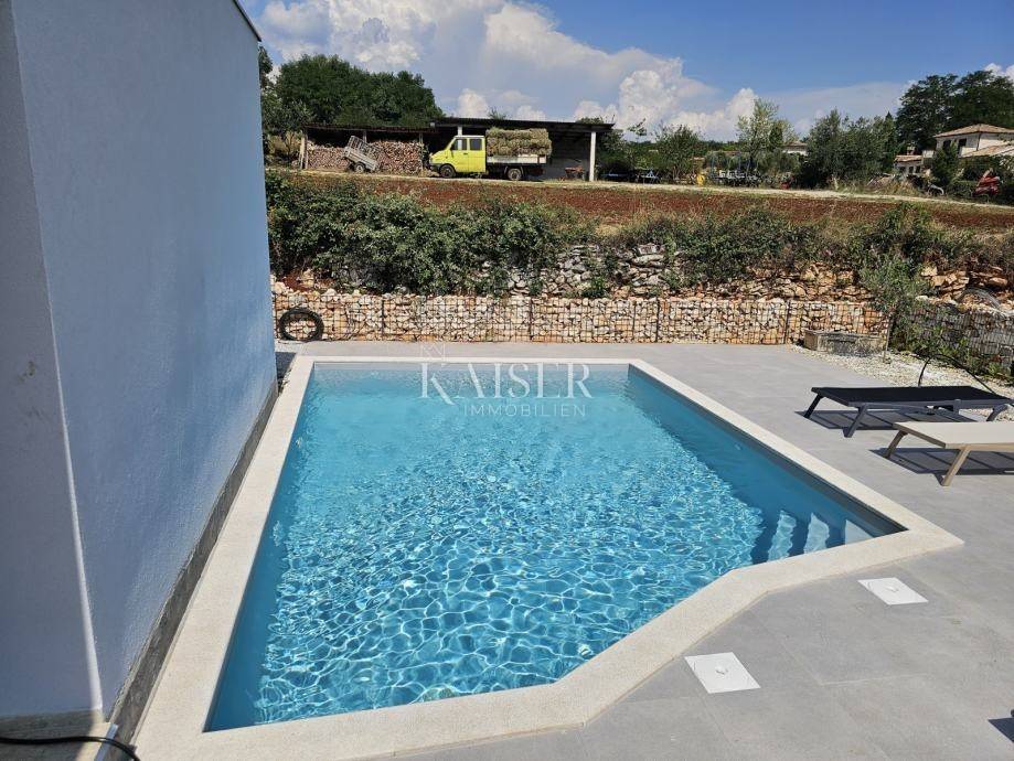 Kaiser Immobilien is selling a house with a swimming pool in a quiet location near Tinjan. On the edge of a picturesque Istrian village, just a few minutes' drive from Sveti Lovreč, Tinjan and the popular Poreč, is this newly built, modernly decorated villa that perfectly combines Mediterranean charm, comfort and privacy. The 102 m² house is located on a 550 m² plot and offers the perfect balance of indoor and outdoor space. It is fully furnished with top-quality modern furniture and equipped with modern appliances. It consists of three bedrooms, one of which is a spacious master bedroom with its own bathroom, while the other two share a second elegant bathroom. In addition, there is an additional toilet and a practical laundry room. Energy class A ensures optimal efficiency throughout the year. In summer, air conditioning units in every room ensure pleasant freshness, while high-quality insulation and modern joinery provide warmth and comfort during the winter months. The special value of this villa is its outdoor space, a true oasis of peace and enjoyment. The spacious covered terrace is designed as an extension of the living room and dining room, with a summer kitchen, barbecue, fridge and practical work surfaces. Thanks to the natural shade that lasts until late afternoon, the terrace invites you to long, relaxing gatherings with family and friends. In front is a 27 m² swimming pool with a 48 m² sunbathing area, surrounded by a carefully landscaped garden with lavender, palm trees, laurel, cherries and other Mediterranean plants. The automatic irrigation system and ambient lighting create the perfect atmosphere at any time of the day, especially in the evening. The view of the nearby olive grove without the possibility of building guarantees complete privacy and lasting peace. The location offers all the conveniences of Istrian life: the shop is just a few minutes' drive away, while shopping centers in Pazin and Poreč are reachable in about fifteen minutes. The sea and beaches are a short drive away, and famous Istrian taverns, wineries and OPGs are nearby. Lovers of an active holiday will enjoy the nearby cycling and hiking trails, adrenaline park and the fact that the villa is located on the famous olive oil route. This property offers more than just a house - it offers a lifestyle. It is perfect for those looking for peace, nature and elegance, either as a private holiday paradise or as a high value rental investment. For more information, contact an agent. Dean Cvitko dean.cvitko@kaiser-immobilien.hr +385 91 5284449