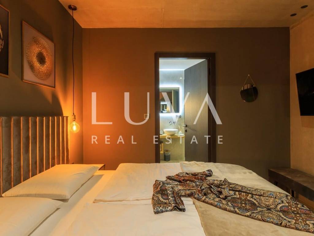 A luxury villa with an area of 280 m² is for sale, located just 500 meters from the sea in Baška, on the island of Krk. The villa spans 2 floors and is situated on a 450 m² property. It has 4 bedrooms with en-suite bathrooms, a spacious living room, a fully equipped kitchen, and a room with a sauna and jacuzzi, with a billiard table in the adjacent room.