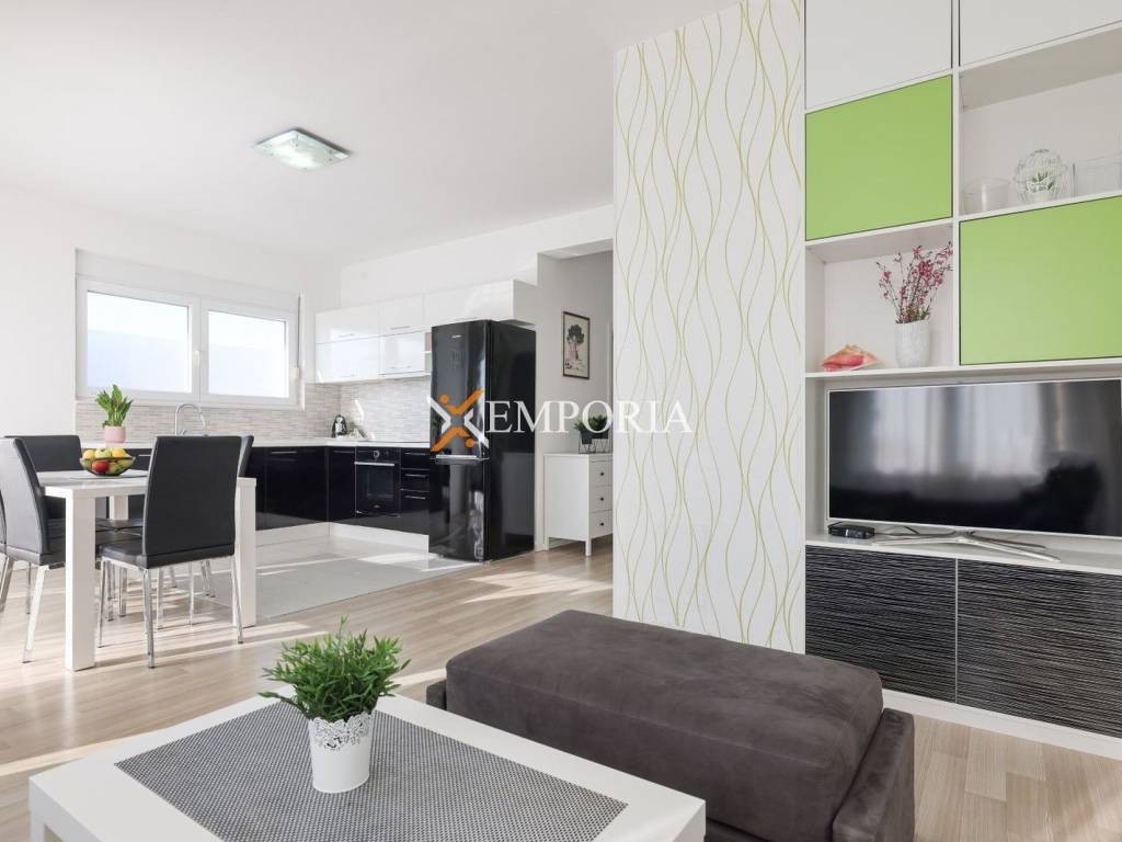 For sale is a beautiful house with a swimming pool in Zaton near Zadar. It is situated in an ideal location, only 400m from the sea and sandy beach, and 550m from the centre. It is oriented to the south.The house consists of 4 apartments located on the ground floor and first floor, all of which are decorated to the last detail. The net living area of the house is 235 m2, and it was built on a plot of 821 m2.On the ground floor there are two apartments. The first apartment consists of a kitchen, dining room, living room, two bedrooms, bathroom, toilet and terrace. The second apartment consists of a kitchen with dining area, living room, one bedroom, bathroom and terrace.On the first floor there are also two apartments, one of which consists of a kitchen, dining room, two bedrooms, bathroom, toilet, hallway and a spacious balcony. The second apartment consists of a kitchen with dining area, living room, one bedroom, bathroom and a balcony.In front of the house there are 6 parking spaces.The house has a well-established tourist activity, and is sold fully furnished and equipped, so it is a great opportunity for investment!