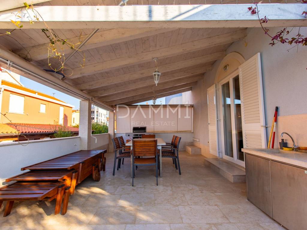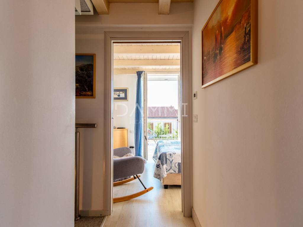 Prodajemo prekrasnu kuću u nizu smještenu u lijepom naselju Volme na samo 400 metara udaljenosti od mora. Kuća se proteže na tri etaže ukupne površine 100 m2. U prizemlju je smješten dnevni dio koji se sastoji od kuhinje, blagavaonice i dnevnog boravka koji imaju direktan pristup na bazen, i natkrivenu terasu pogodnu za uživanje s prijateljima uz roštilj. Na prvom i drugom katu su se smjestile tri spavaće s sobe, te dvije kupaonice.