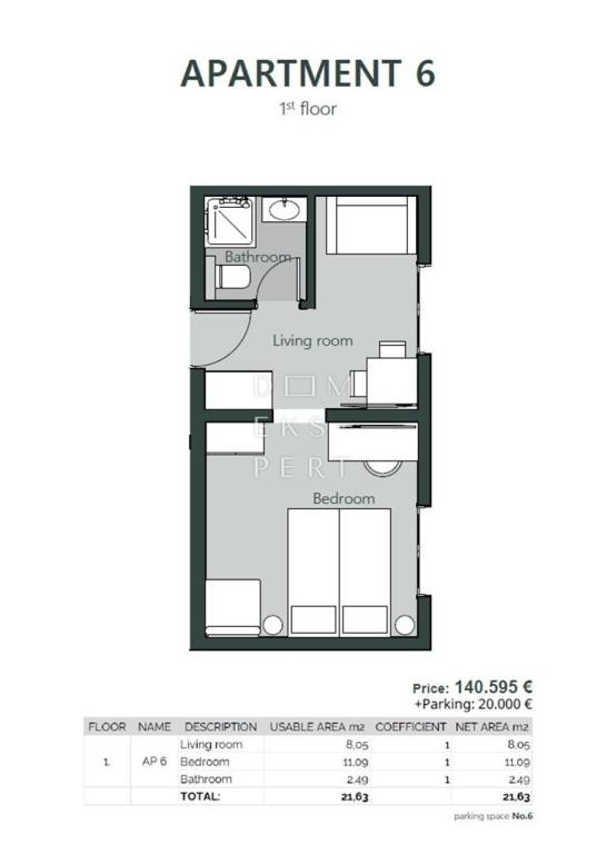 An outdoor parking space across from the building is available for purchase at the price of 20,000 EUR.