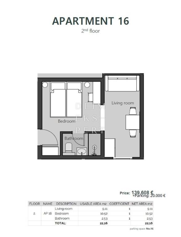 An outdoor parking space across from the building is available for purchase at the price of 20,000 EUR.