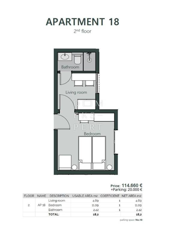 An outdoor parking space across from the building is available for purchase at the price of 20,000 EUR.