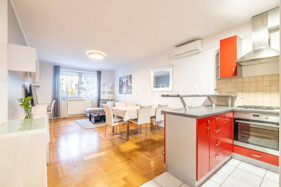 Zagreb-Knežija, prostran trosoban površine 68 m2 s garažnim parkirnim mjestom i ostavom u odlično održavanoj zgradi novije gradnje.Sastoji se od: ulaznog hodnika s ormarima, dvije spavaće sobe od koje jedna ima izlaz na lijep balkon na mirnoj dvorišnoj strani, kupaonice te open-space kuhinje, blagovaonice i dnevnog boravka s lijepim pogledom.Iznajmljuje se kompletno namješten, a nalazi se u blizini svih sadržaja za život (škola, vrtić, trgovine, javni prijevoz...)Za više informacija stojimo na raspolaganju.
