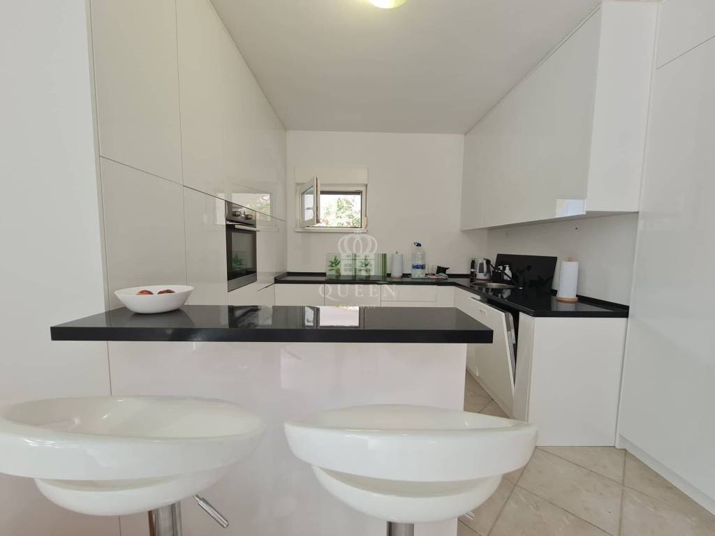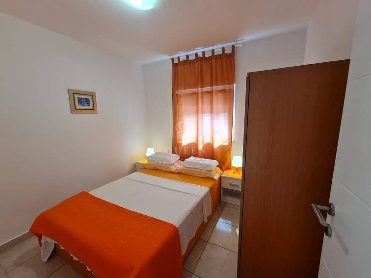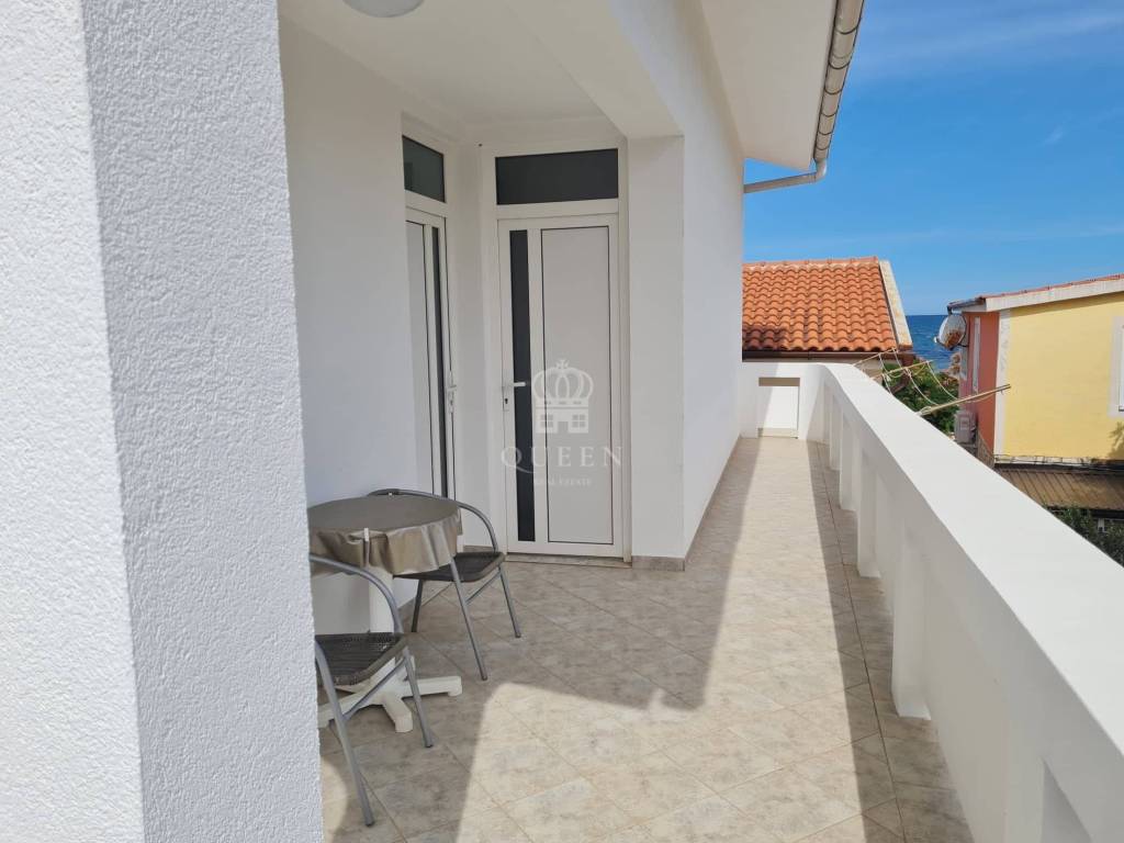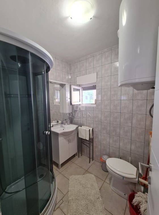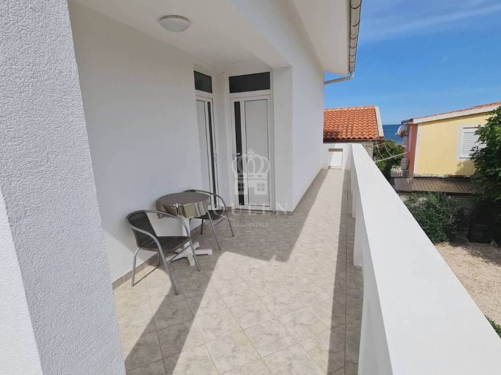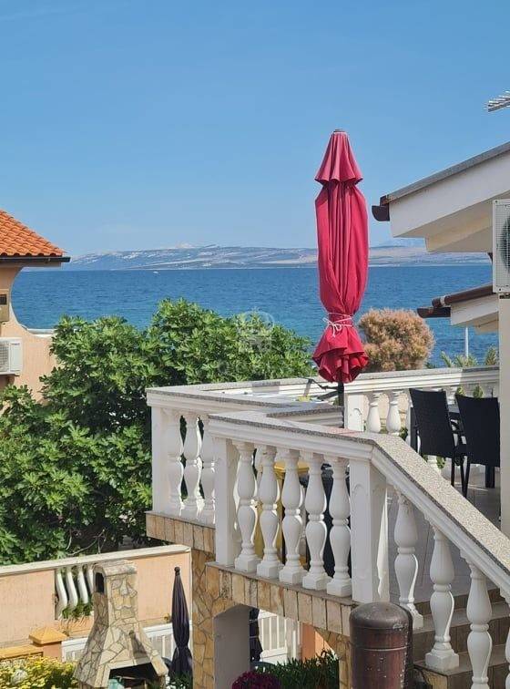 Prodaje se prekrasna samostoje��a apartmanska ku��a udaljena svega 80m od mora i pla��e.Ku��a se nalazi na parceli od 306m2. U prizemlju nekretnine smje��ten je veliki trosobni apartman sa tri spava��e sobe, kupaonica, kuhinja spojena sa dnevnim boravkom i terasa povr��ine 101m2. U prizemlju se tako��er nalazi gara��a od 32m2 te dodatna 3 vanjska parkirna mjesta. Vanjskim stepenicama se penje na kat ku��e gdje se nalaze dva dvosobna apatmana, kategorizirana na 3 zvjezdice za smje��taj 2+2 osobe. Apartmani su u potpunosti opremljeni, prostrani i uhodani za najam. Posjeduju 2 terase od kojih je jedna velika i sa djelomi��nim pogledom na more. Nekretnina je lagilzirana, posjeduje uredne papire i vlasni��tvo te je odmah spremna za preuzimanje. Mogu�� dogovor oko cijene za ozbiljnog kupca.