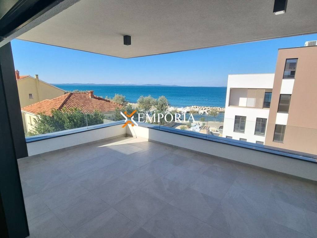 Apartment for sale only 35 m from the sea in Zaton. It is a new building with elevator in the 2nd row to the sea in Zaton near Zadar. Apartment has a nice sea view.This is a second floor apartment. The room layout consists of a hallway, 2 bedrooms, bedroom with bathroom, bathroom, kitchen with dining and living room and a covered terrace. From the apartment you can access the roof terrace belonging to this apartment. The area of the roof terrace is 115,28 m2. On the roof terrace there is a 15,29 m2 swimming pool. The net usable area of the described rooms with terraces is 134,60 m2. The apartment also has two parking spaces.Total net area of the apartment with all its parts is 140,32 m2.When purchasing this property, the buyer does not pay any real estate transfer tax.This property is only 700 m away from the center of Zaton and the city of Zadar is also only 12 km away.