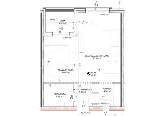 Stan S-1-11 smješten je na prvom katu i predstavlja idealno rješenje za pojedince ili parove koji traže funkcionalan prostor s modernim dizajnom. Ovaj stan pruža savršenu ravnotežu između estetike i praktičnosti.