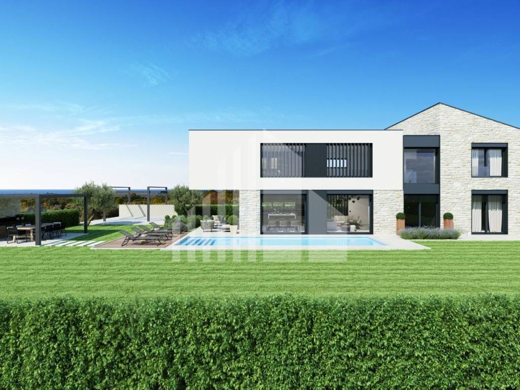 Ova vila prostire se na 198,16 m stambenog prostora i nalazi se na parceli od 725 m. Ova moderna vila nudi luksuz i komfor samo 6 km od Poreča i 5 km od mora, smještena u srcu poznate vinske regije. Prizemlje nudi prostrani dnevni boravak, kuhinju s otokom i blagovaonicu, okružene staklenim stijenama koje ispunjavaju prostor prirodnim svjetlom i povezuju unutrašnjost s vanjskim prostorom. Spavaća soba s vlastitom kupaonicom i walk-in ormarom nalazi se na prizemlju, zajedno s tehničkom sobom, toaletom za goste i praonicom rublja, pružajući maksimalnu funkcionalnost.