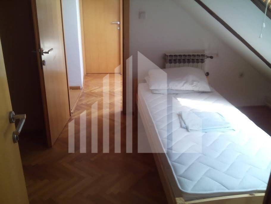 Centar, Palmotićeva, dvoetažan stan s izlaskom na veliku terasu. Stan za potpuno uređenje, no zahvalnog tlocrta s tri kupaonice i dvije vertikale vode, tako da se tlocrtno može prilagoditi brojnim zahtjevima. Trenutno je koncipiran tako da 2 spavaće sobe imaju svoju kupaonicu, a dvije manje spavaće u galeriji dijele treću kupaonicu. Kuhinja i dnevni boravak čine centralni, otvoreni dio prostora. Iz jedne od soba izlaz je na veliku terasu koja gleda prema lijepom, uređeneom i živom dvorištu, što je rijetkost stanova u centru. Stan je u naravi 145 m2, u vlasničkom upisano 110.34 m2. Dodatni kvadrati su legalizirani, međutim nije napravljeno novo etažiranje. Stan ima vlasnički list, građevinsku i uporabnu dozvolu te rješenje o izvedenom stanju. Nakon potresa stan nije oštećen te je zgrada dobila zelenu naljepnicu. Za sve dodatne informacije slobodno se javite: