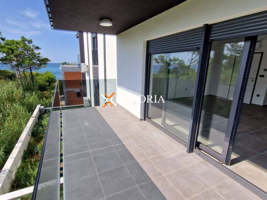 An excellent apartment for sale in a new building that is finished and ready to move into. The building is just 70 m from the sea and the apartment offers partial sea views.This is a first floor apartment. The floor plan consists of a hallway, a bedroom, a bedroom with bathroom, a bathroom, a kitchen with dining room and living room and a covered terrace. The net usable area of the apartment with terrace is 74,83 m2. In addition, the apartment also includes 2 parking spaces.The total net usable area of this apartment with the associated parts described is 79,83 m2.The building consists of a total of 6 apartments. This property is located just 1.2 km from the center of Privlaka.