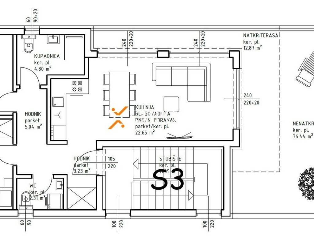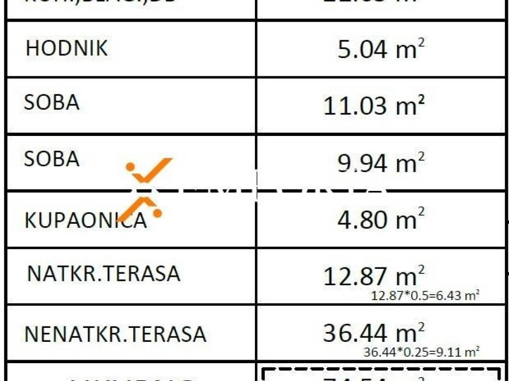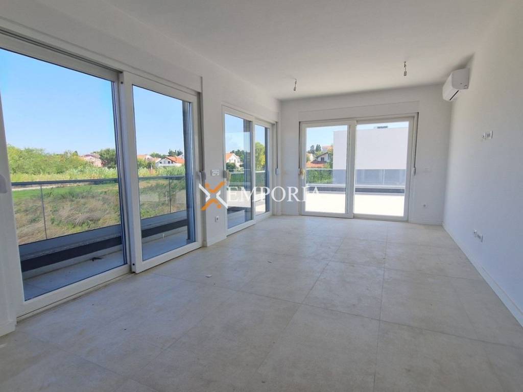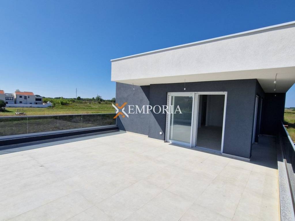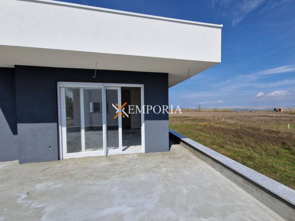 Excellent apartment for sale on the first floor of a building in Privlaka – Sabunike settlement. It is a modern new building. The apartment offers partial sea views. The apartment has a separate entrance.There are a total of 3 apartments in the building. The room layout consists of a hallway, 2 bedrooms, bathroom, toilet, kitchen with dining room and living room, partially covered terrace. The net area of the described is 74.54 m2. In addition, the staircase that leads to the first floor of 11.05 m2 and a storage area of 5.93 m2 are part of the apartment. In addition, the apartment has two parking spaces.The total net usable area of the apartment with all accessories is 94.52 m2.This property is 700 m from the sea and 2.3 km from the town center.