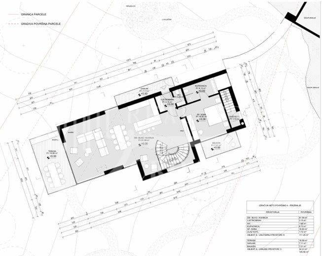 Vila se proteže na tri etaže, ukupne bruto površine 351,53m: