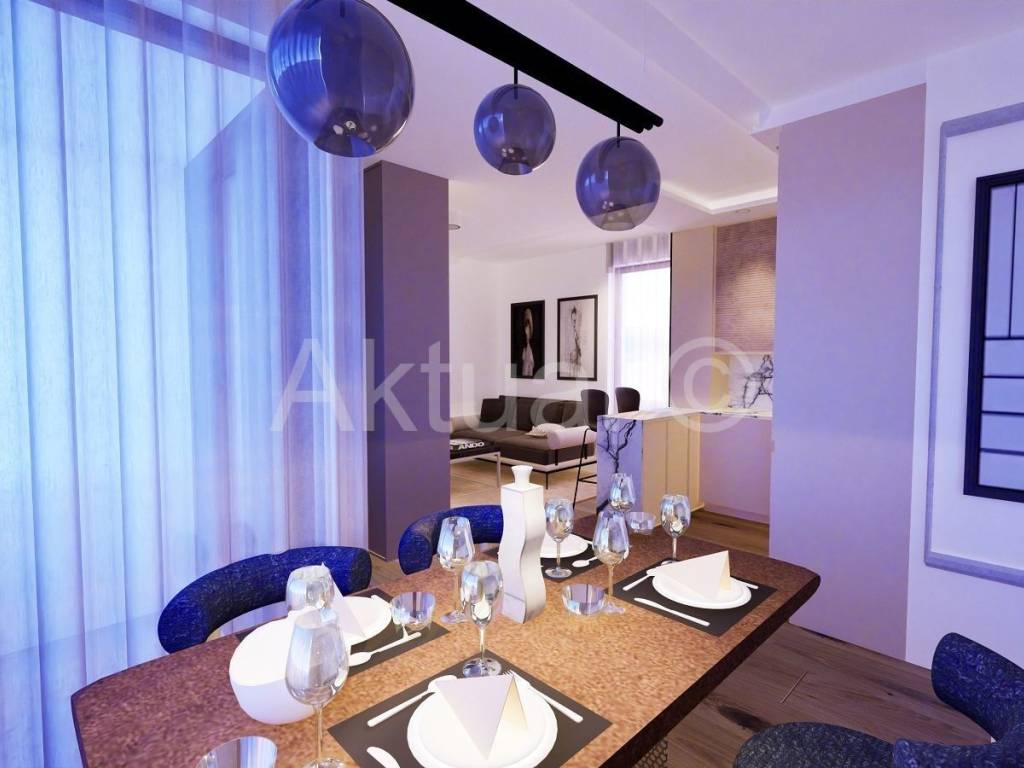 Keramičke gres pločice I klase velikog formata u sanitarnim prostorijama i balkonima/terasama.Sanitarije u kupaonicama su od renomiranih proizvođača poput Laufen, Hansgrohe, Tecce.