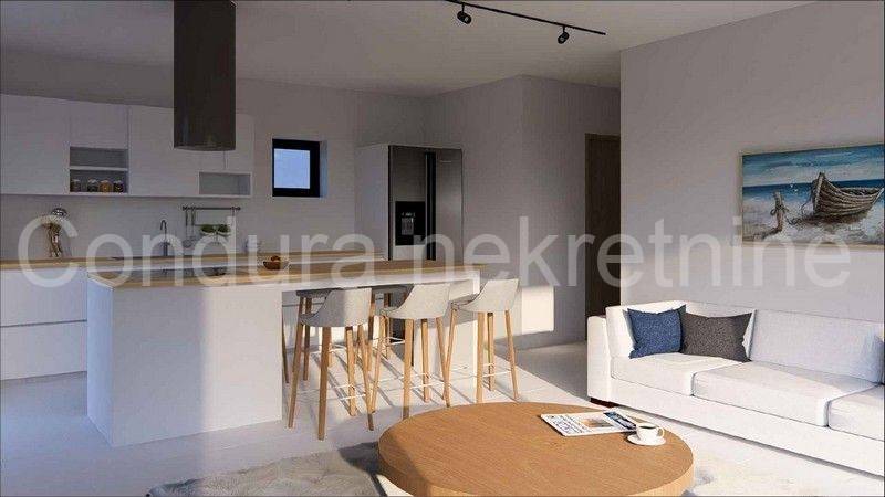 An attractive apartment for sale on the ground floor of a small building with a total of three residential units, located in a quiet and green area, just 1500 m from the sea.
