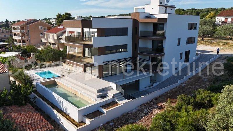 An exclusive ground floor apartment is for sale in a modern building in Kožino, just 80 meters from the sea.
