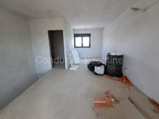 The staircase leads to the2nd floor, where the third bathroom, third bedroom / living room with access to a partially covered balcony with a view of the sea are located.