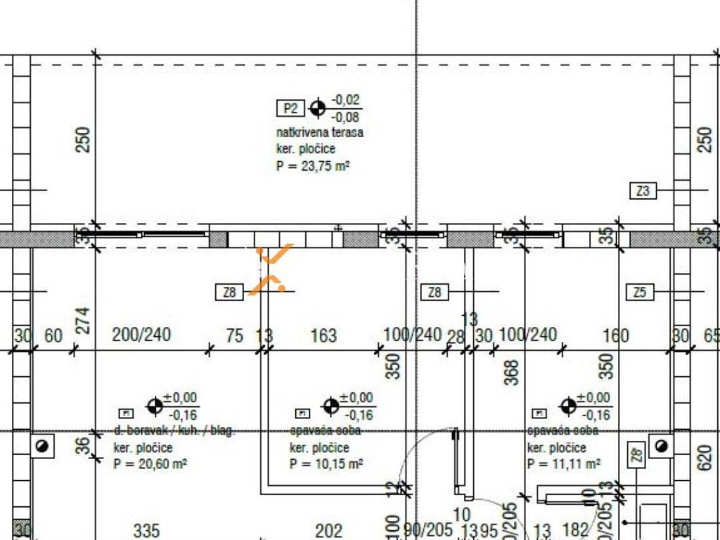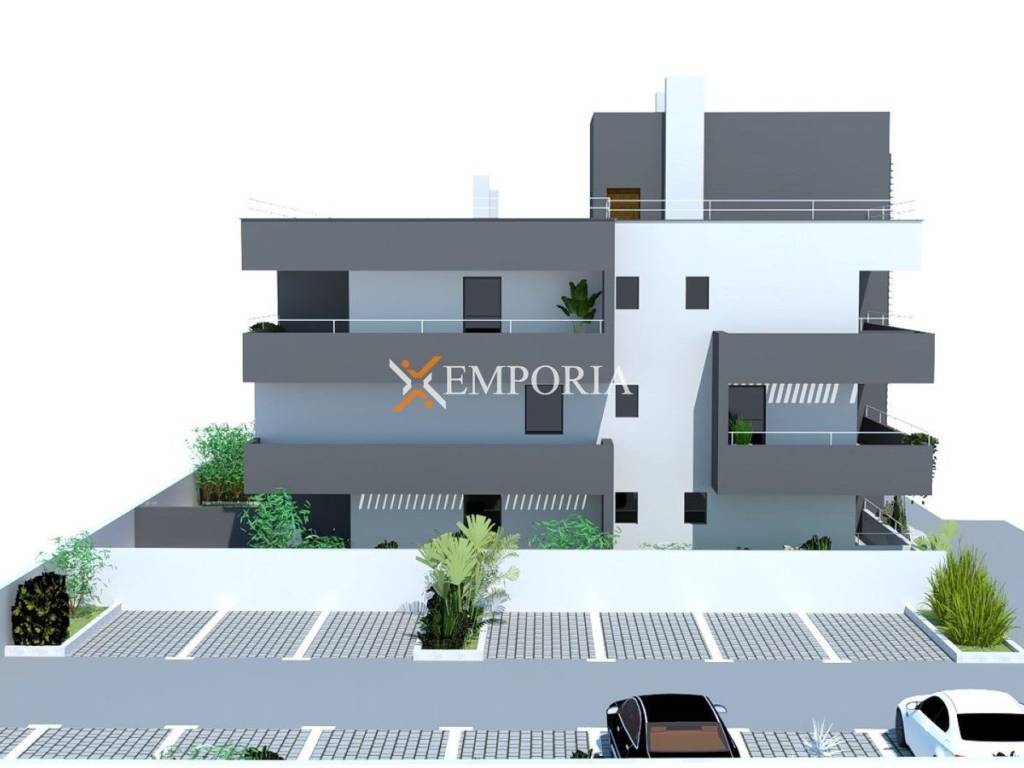 Apartment for sale in a new building in Nin. The apartment is located on the ground floor of a building with 10 residential units. It consists of a hallway, a bedroom, a bedroom with a bathroom, a bathroom, a kitchen with a dining room and a living room, and a covered terrace. The net usable area of the described premises is 66,77 m2. In addition, the apartment has two parking spaces in front of the building, a part of the garden and a swimming pool of 18 m2.The total net usable area of the apartment with all additional parts is 76,27 m2.We emphasize that this apartment is sold through a company and therefore the buyer does not have to pay real estate tax.The distance of this property from the sea is only 110 m. The distance from the center of Nin is 800 m.