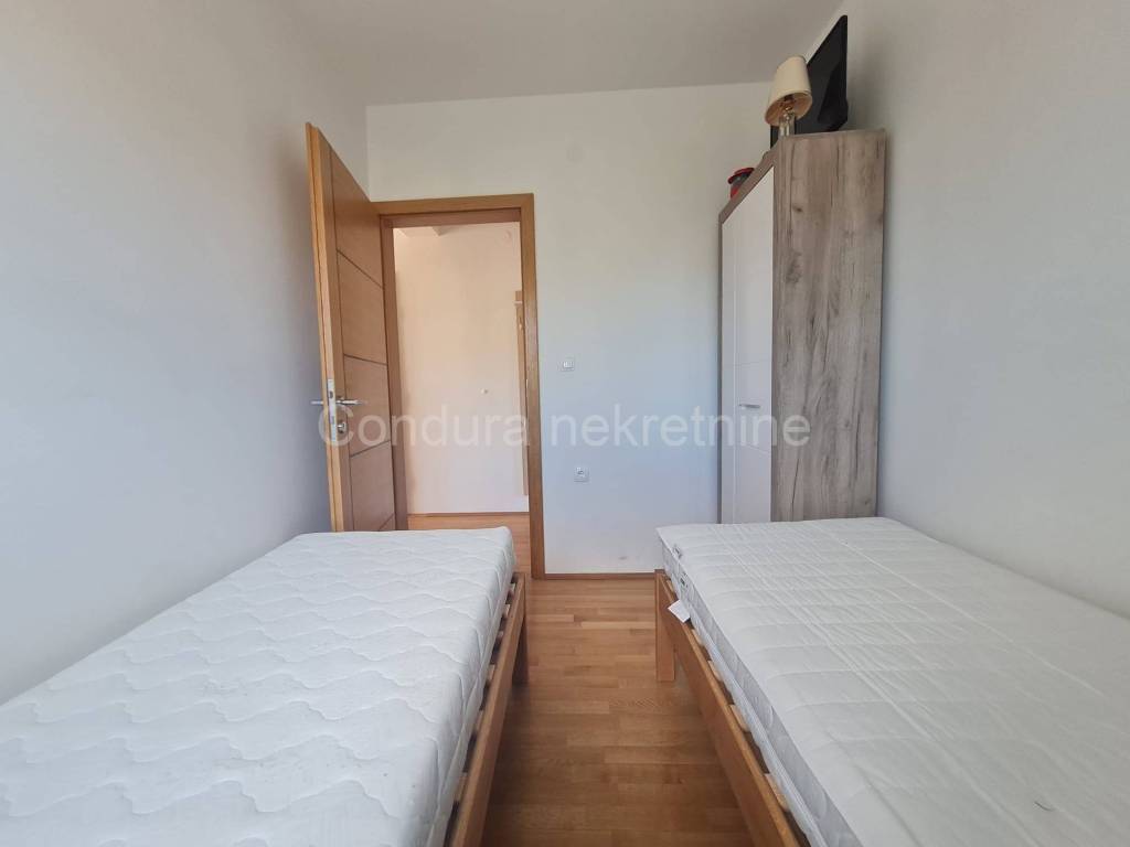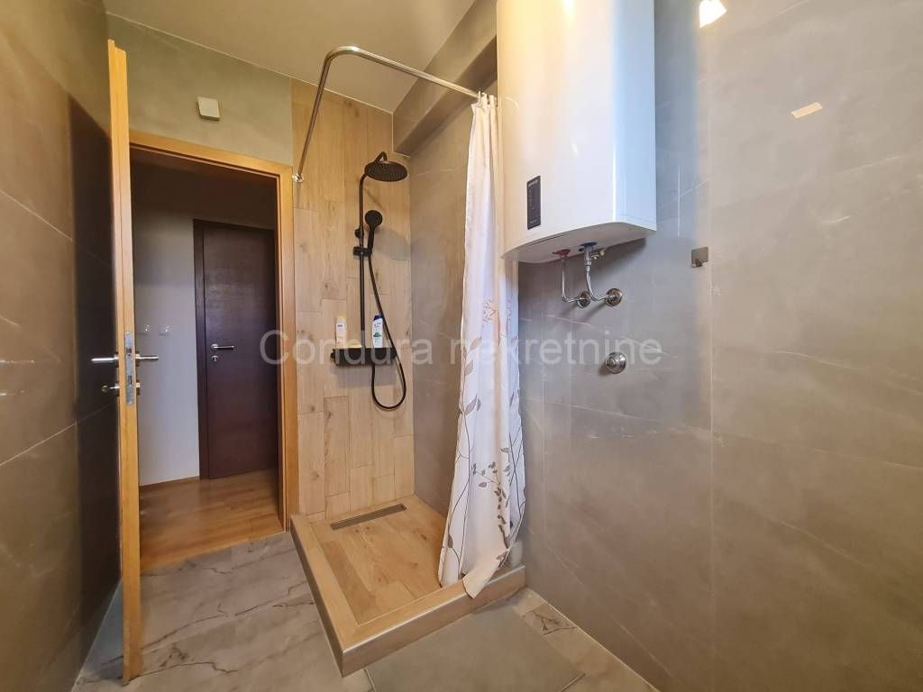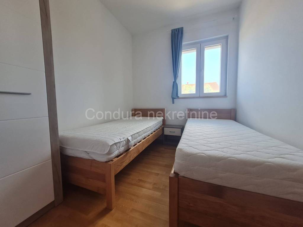 It consists of an entrance hall, a bathroom, two bedrooms, a living room with a kitchen and an uncovered terrace with a beautiful open view of the sea and the islands. It also has one parking space in the courtyard of the building. The net area of the apartment with all accessories is 51 m2.