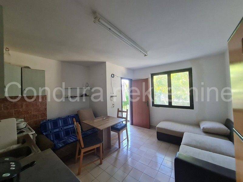 In the spacious yard (270 m2), which is currently arranged as a green area, there is enough space to park several vehicles and the possibility of building a swimming pool.