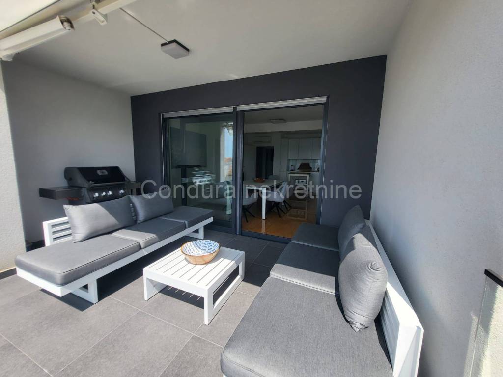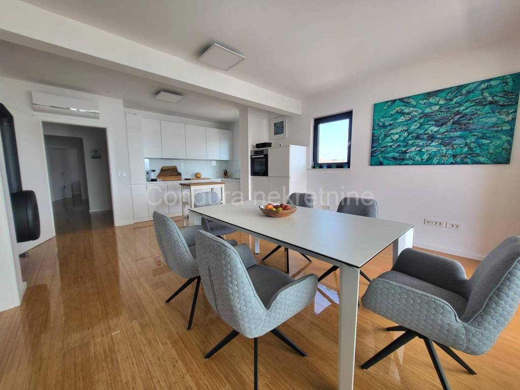 Diklo (Zadar) - for sale is a beautiful, fully furnished, modern three-bedroom apartment on the 2nd floor of a new residential building, only 30 m from the sea and the beach, with a sea view.