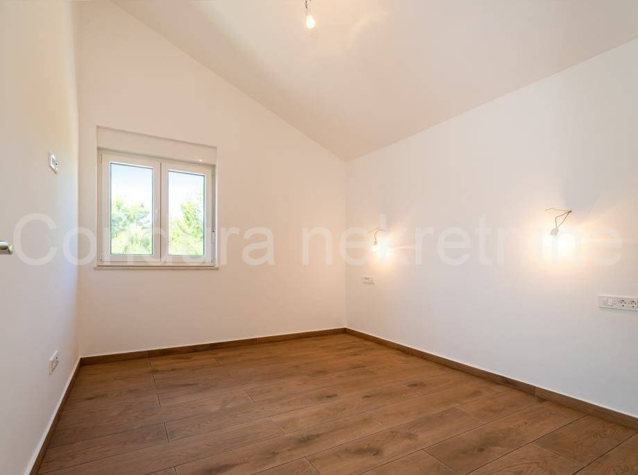 It consists of a living room with a dining room and a kitchen, two bedrooms, bathroom, an entrance hall, terrace with a view of the sea and a private yard with a terrace, garden, solar shower and a driveway with two parking spaces.