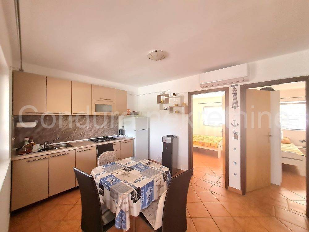 A very pleasant and comfortable apartment with an outdoor covered terrace overlooking the sea and consists of 2 bedrooms, a kitchen with a living room and dining room, and a bathroom.
